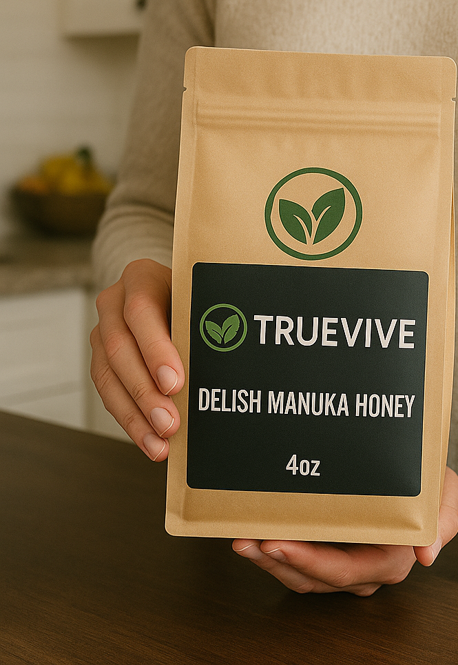 TRUEVIVE Manuka Honey Blend is specially crafted for its premium quality and rich antioxidant content. Unlike regular honey, it’s known for its unique soothing properties and health benefits, making it a powerful natural remedy for wellness.